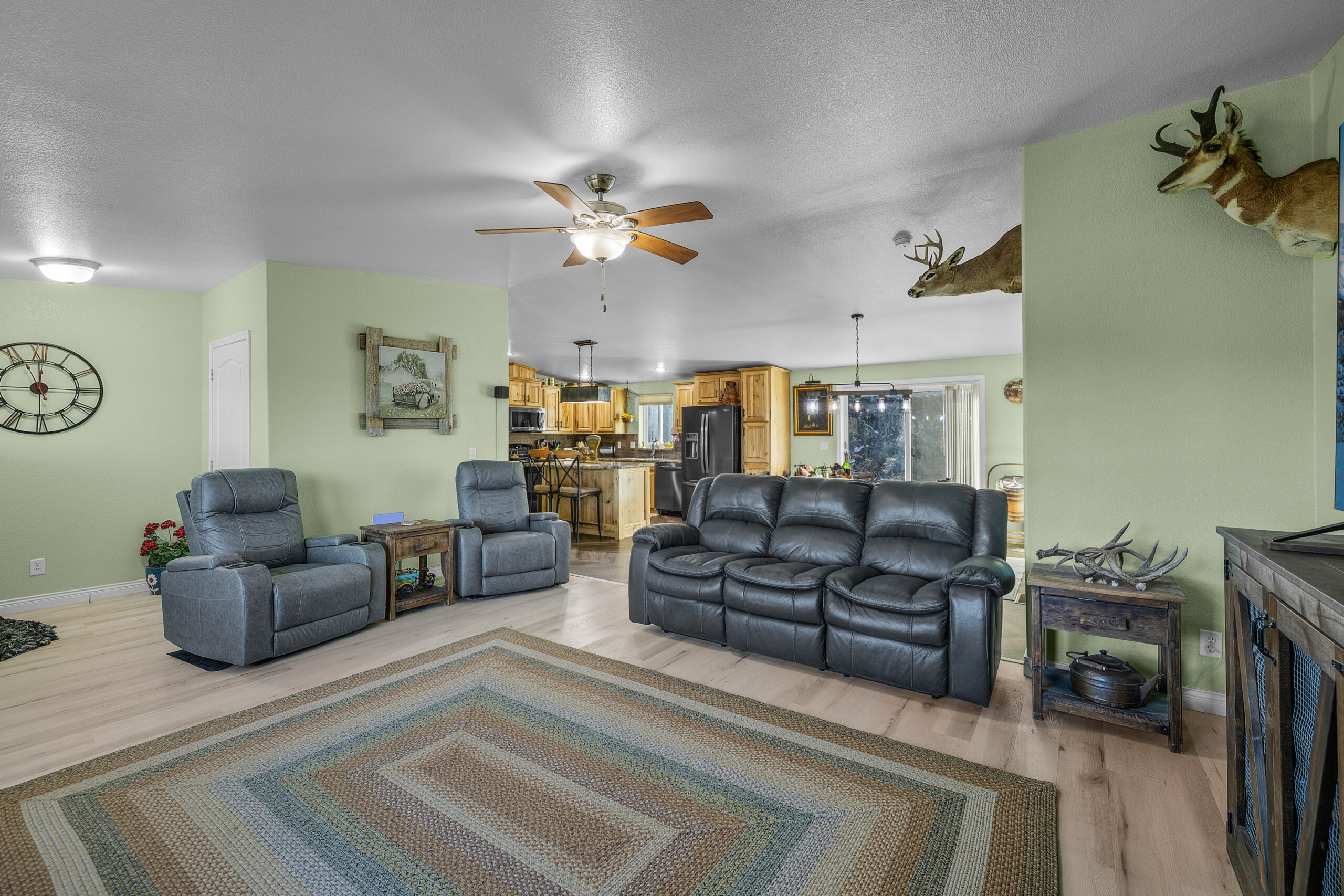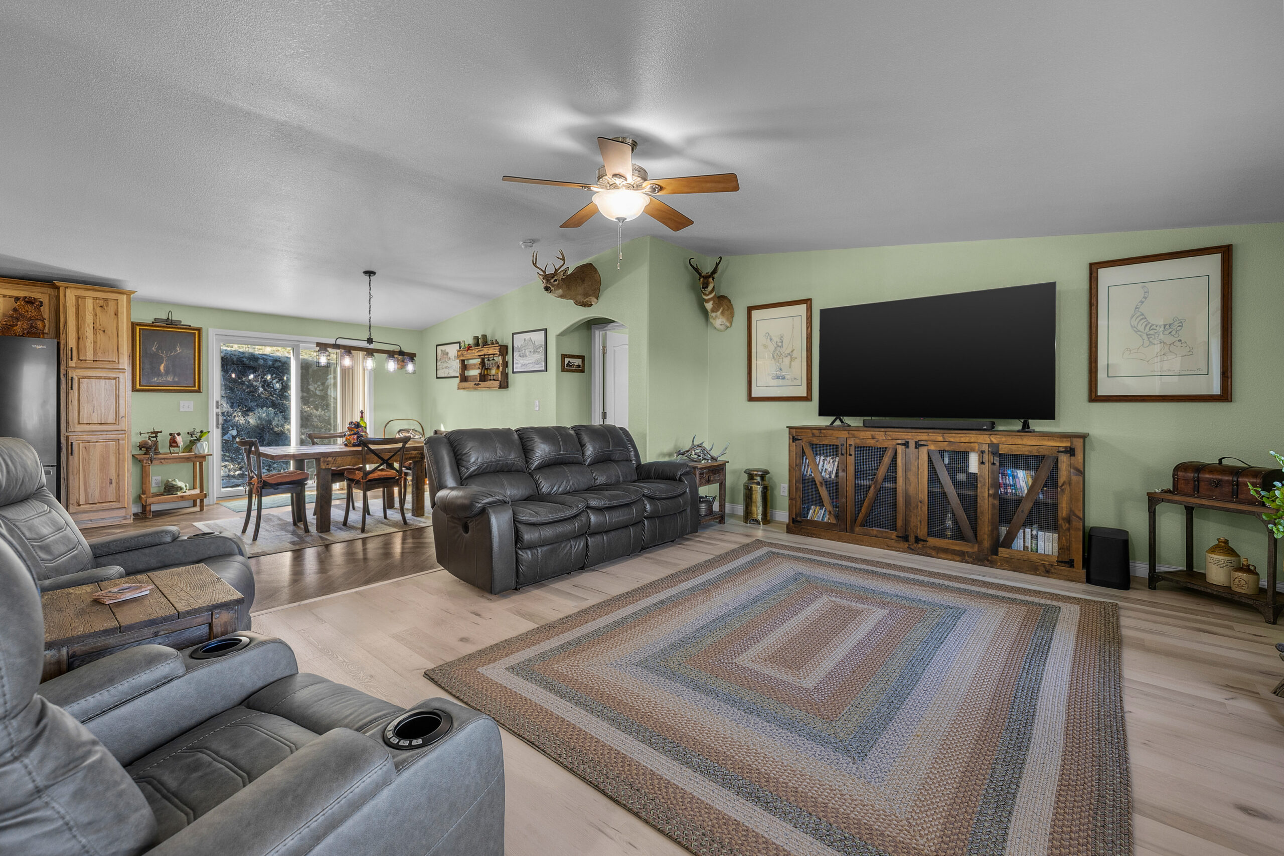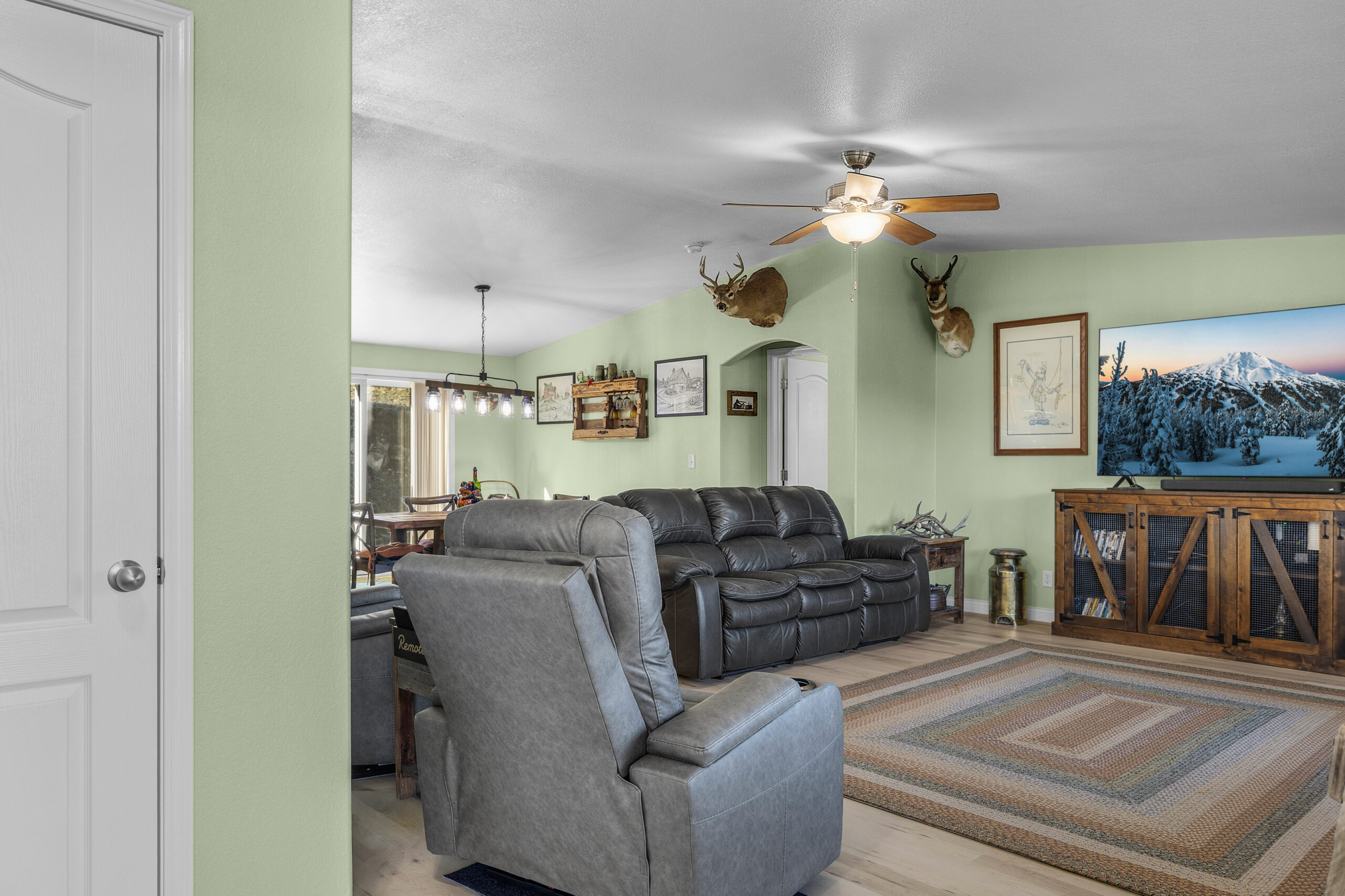 Refined Country Living Overlooking John Day Golf Course Experience the perfect harmony of sophistication and rural tranquility. Nestled on a sprawling 1.60-acre lot, this 2,100 sq. ft. residence offers a lifestyle defined by comfort and breathtaking beauty. The interior welcomes you with a seamless open floor plan, anchored by a beautiful open kitchen and dinning, featuring premium stainless steel and black appliances and a functional center island. Every detail has been curated for excellence, including brand-new, high-efficiency Andersen windows and doors that frame panoramic views from every room. Outdoor living is at its finest on the expansive Trex deck, spanning the entire front of the home with covered seating areas to soak in the mountain vistas and the lush fairways of the John Day Golf Course. The primary suite serves as a private sanctuary with direct deck access—perfectly positioned for the 220V hot-tub-ready hookup. Beyond the main home, the property is built for utility and security, featuring a large detached garage, an expansive covered RV structure with additional bays for your “toys,” and a full-house Generac generator for uninterrupted power. This is a rare find for those seeking acreage, high-end amenities, and the best views in the valley.