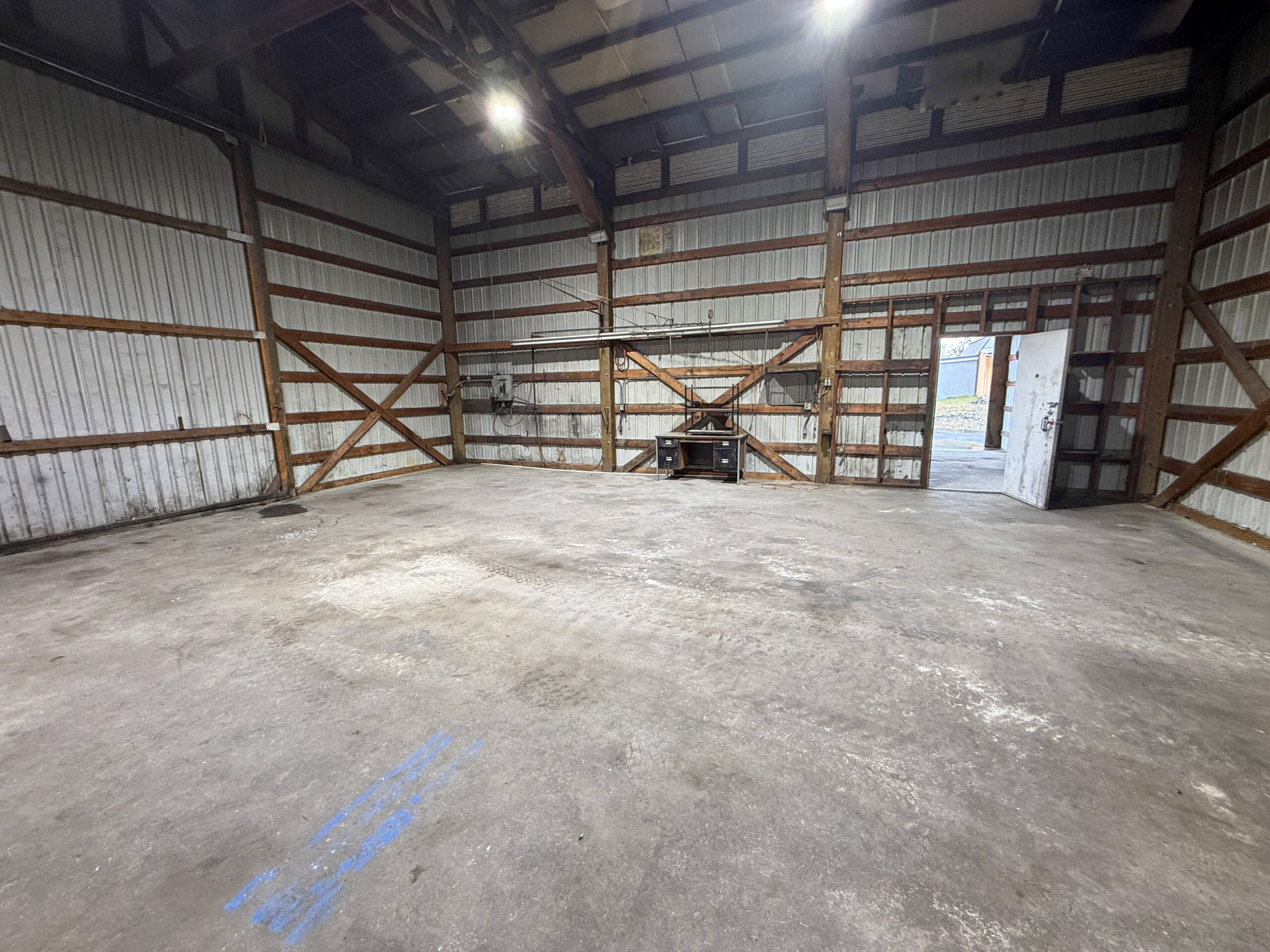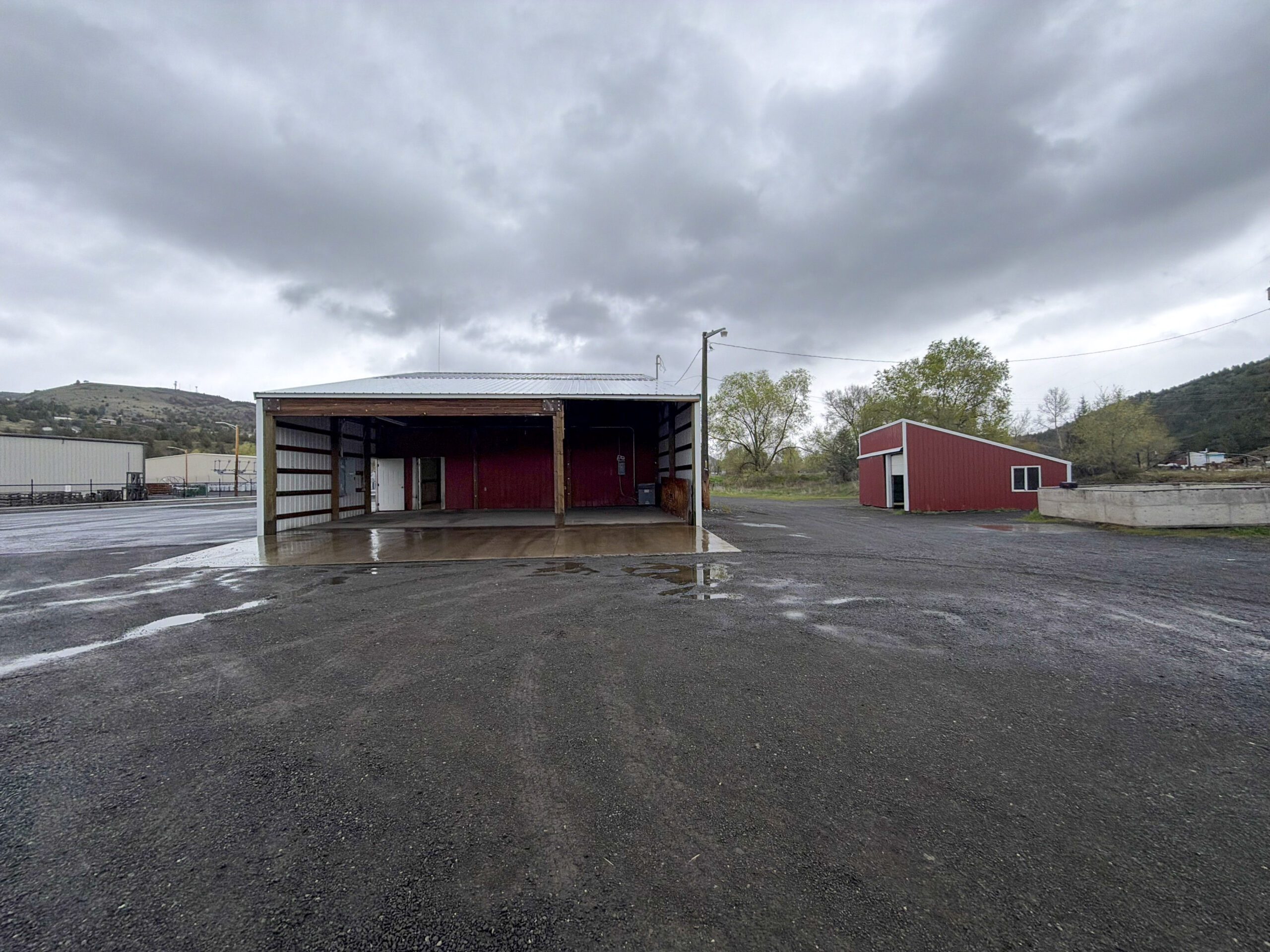 This commercial property features a 36′ x 30′ shop with a concrete floor and convenient pull-through roll-up doors. It includes a 36′ x 28′ partially enclosed lean to and a 20′ x 36′ roof cover over a single-wide trailer. The 1971 single-wide measures 12′ x 40′ and contains one bedroom, one bathroom, and a kitchen area equipped with cabinets and a countertop, although it lacks appliances. The living room was previously utilized as an office for a former business. Additionally, the property includes a 24′ x 30′ storage building. The premises are equipped with three-phase power, two electric meters, fiber internet, and a loading dock, all accompanied by ample parking. City water and sewer services are also available. The total lot size is 0.56 acres. 2025 taxes $950.83