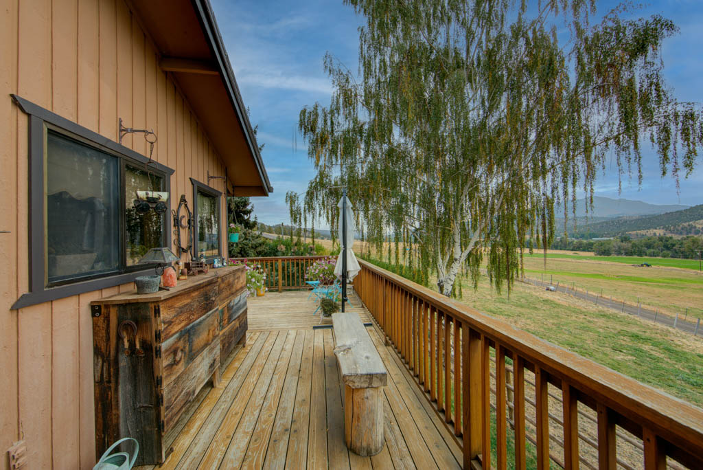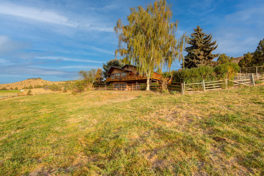 Have you been waiting for an end-of-the-road property or a true horse setup? This 7.01-acre property offers 2.6 acres of irrigation rights, two cross-fenced pastures, and a 720 sq ft barn with two stalls and hay storage—ideal for livestock or hobby farming. The home is perfectly positioned overlooking lush green pastures with views of wildlife, the John Day River, and the surrounding landscape. Built in 1984, this 3,128 sq ft home features 3 bedrooms and 3 bathrooms with a versatile and well-designed layout. The primary suite is spacious and includes a walk-in closet, tile shower, and a slider leading outside. The main living area offers hardwood floors, vaulted ceilings with exposed beams, and a woodstove to keep you warm, complemented by a ducted heat pump throughout the home. The daylight basement provides additional living space and includes a second primary suite complete with a sauna, along with a pantry and mechanical room. With exterior access and its own entrance, this level is ideal for guests or multi-generational living. Outdoor living is a highlight with a large deck perfect for entertaining. Additional improvements include an 816 sq ft detached garage with parking for two vehicles and a bonus room, a 576 sq ft shop, a deer-fenced garden, and a chicken coop. This property offers privacy, functionality, and scenic beauty—while being just minutes from town. Properties like this are rare. Do not miss your opportunity. Zoned EFU. 2025 TAXES $4,190.13