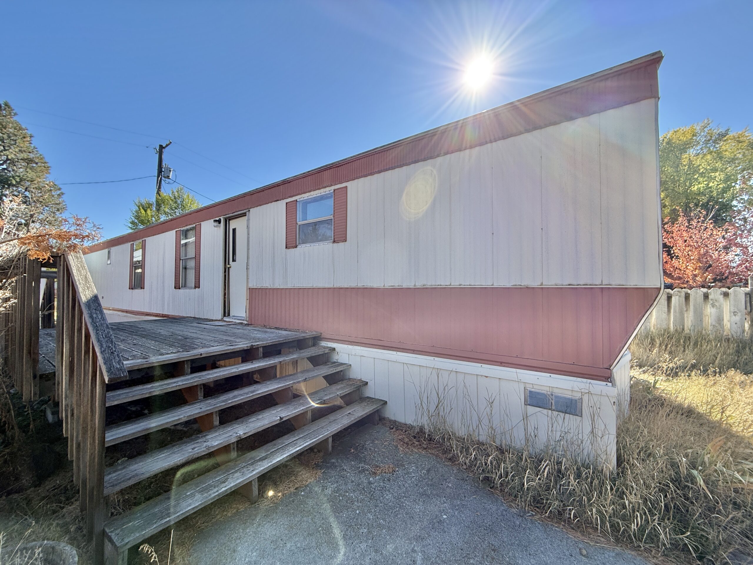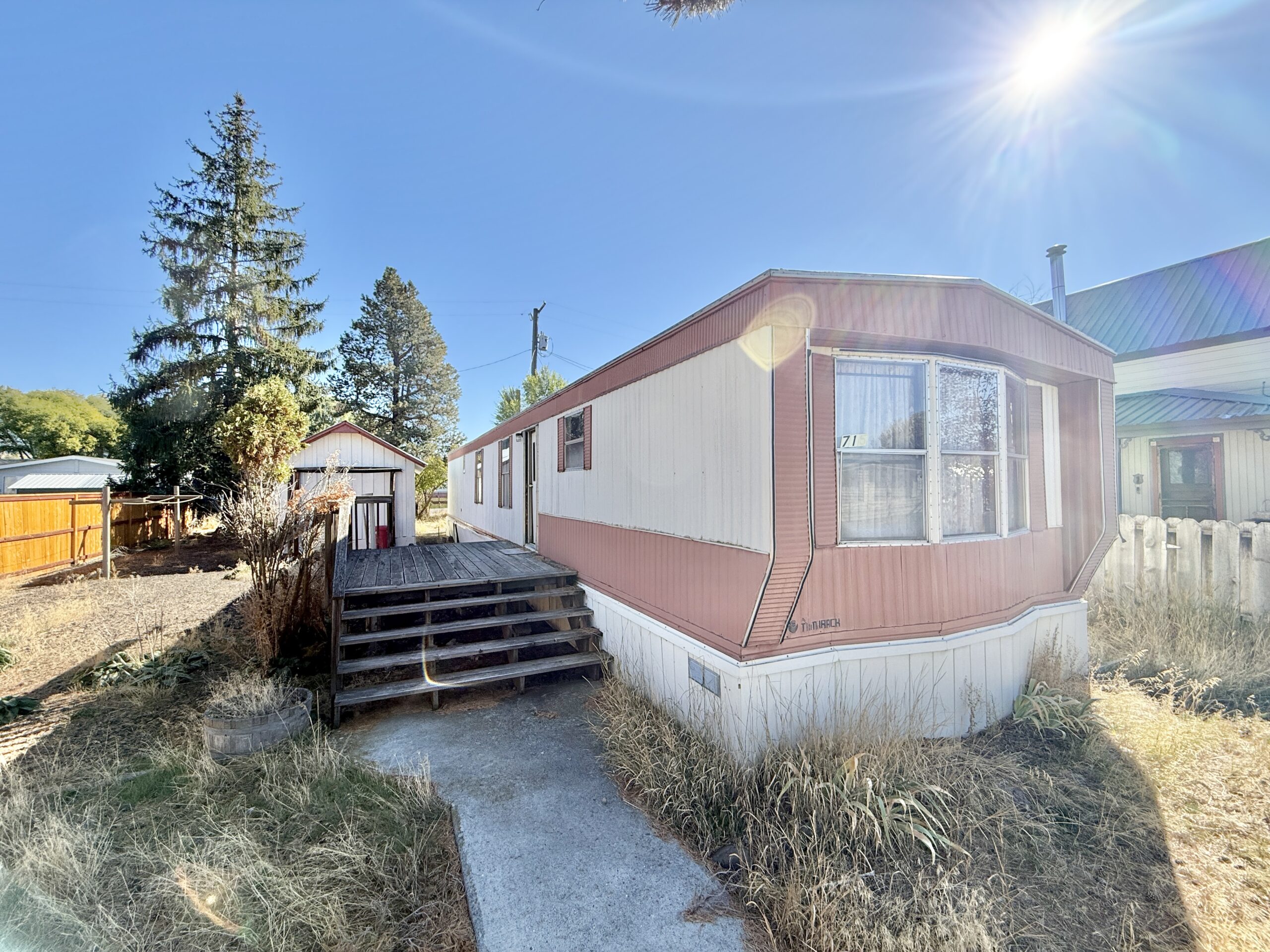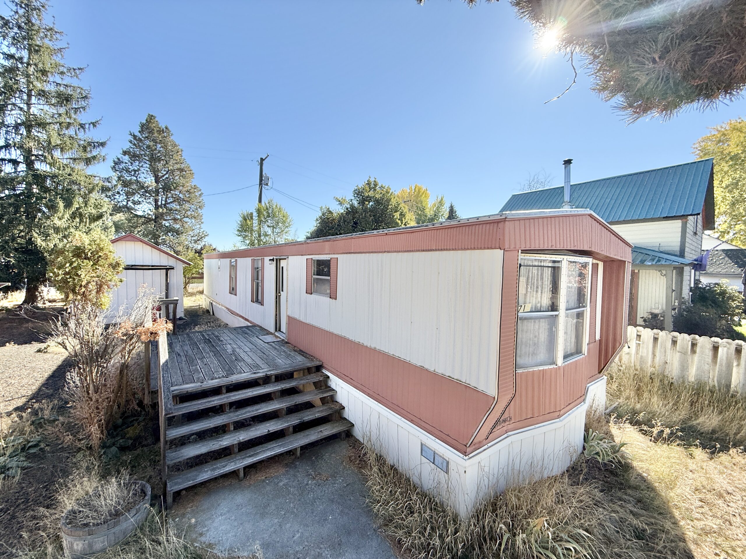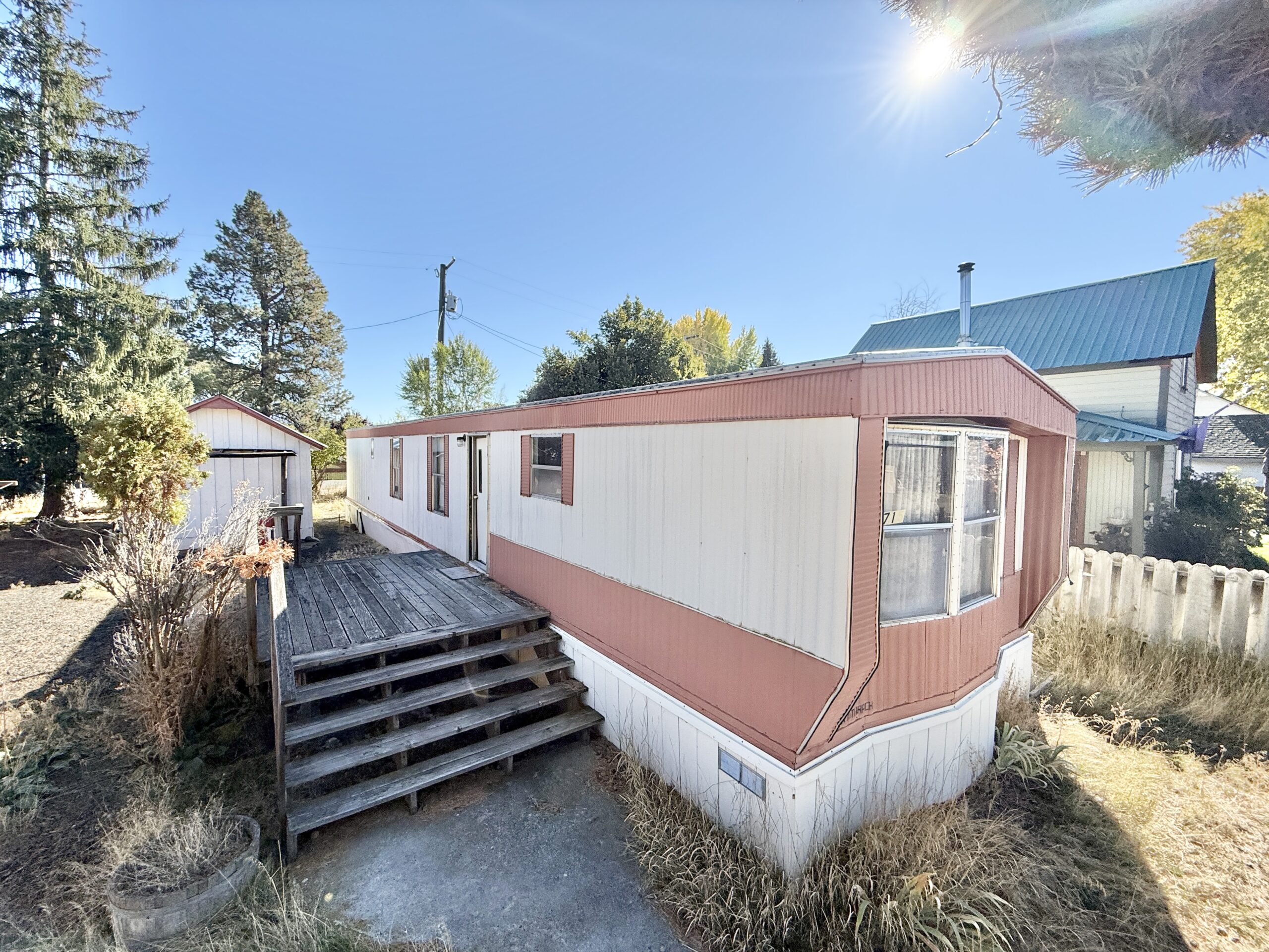 This charming fixer-upper presents a wonderful opportunity for a cash buyer. Enjoy approximately 99’x 49′ lot, 854 square feet of comfortable living space, featuring 2 bedrooms, 1 bathroom, and a cozy living room. The windows are original aluminum, the roof is made of a rubberized material, the home is heated with an electric furnace You’ll have everything you need, along with extra storage for your belongings in the 13’x20′ garage, which boasts a durable metal roof. Please note that the home requires skirting a fridge and some minor repairs. Additionally, securing financing may pose a challenge, as many lenders do not offer loans for single-wide manufactured homes. Currently, the utilities are turned off, but the property includes kitchen appliances and a few personal items.