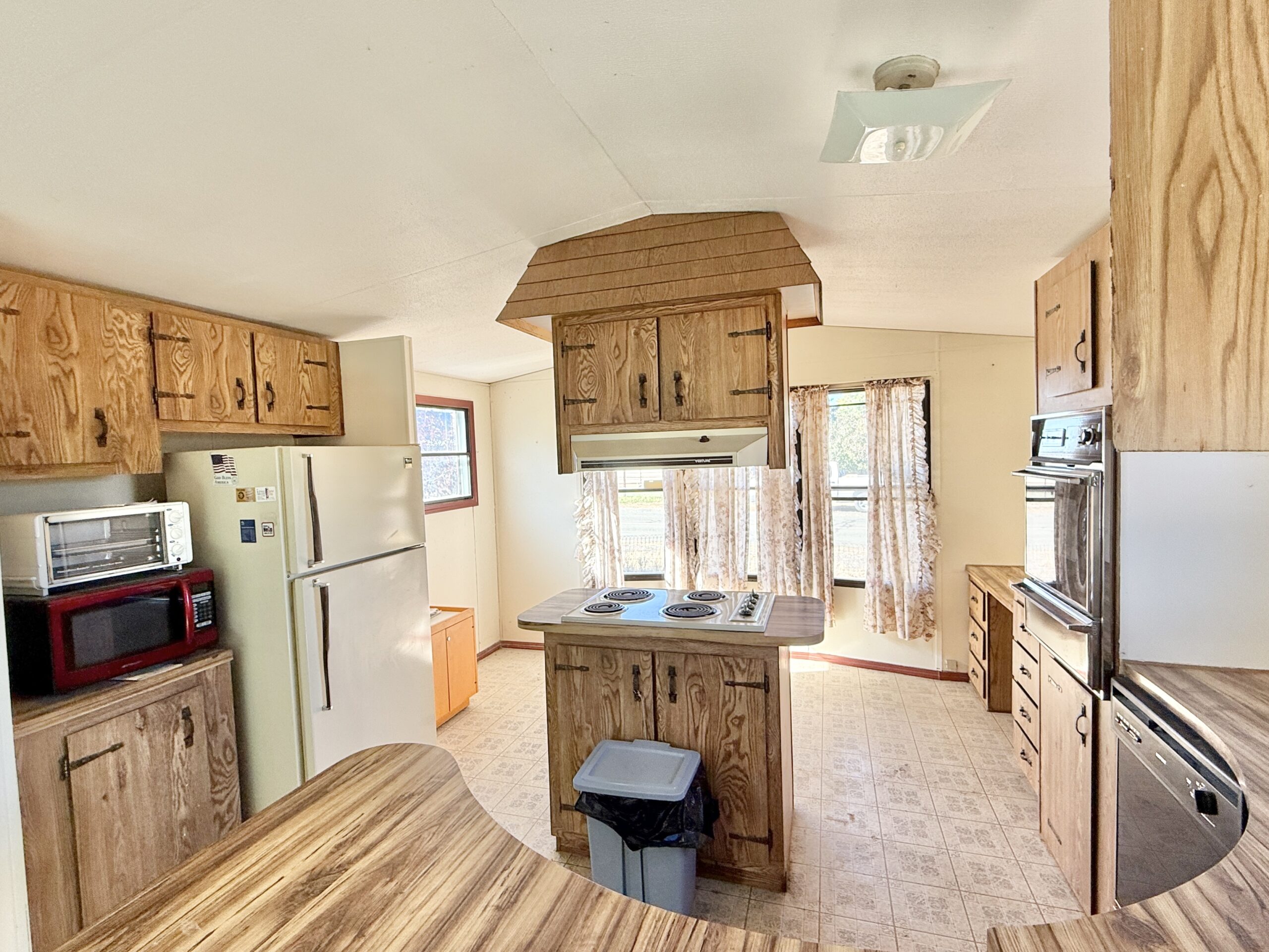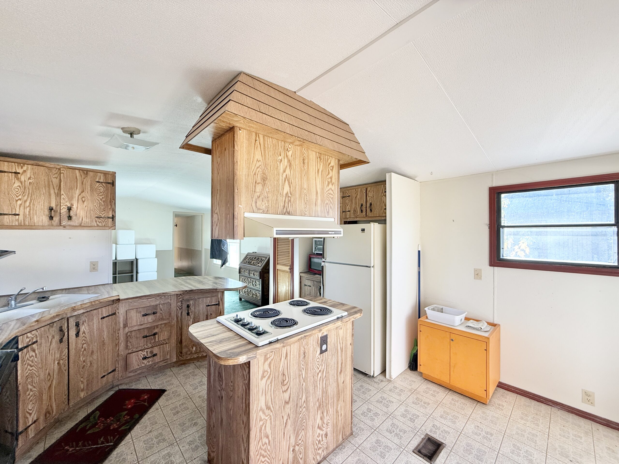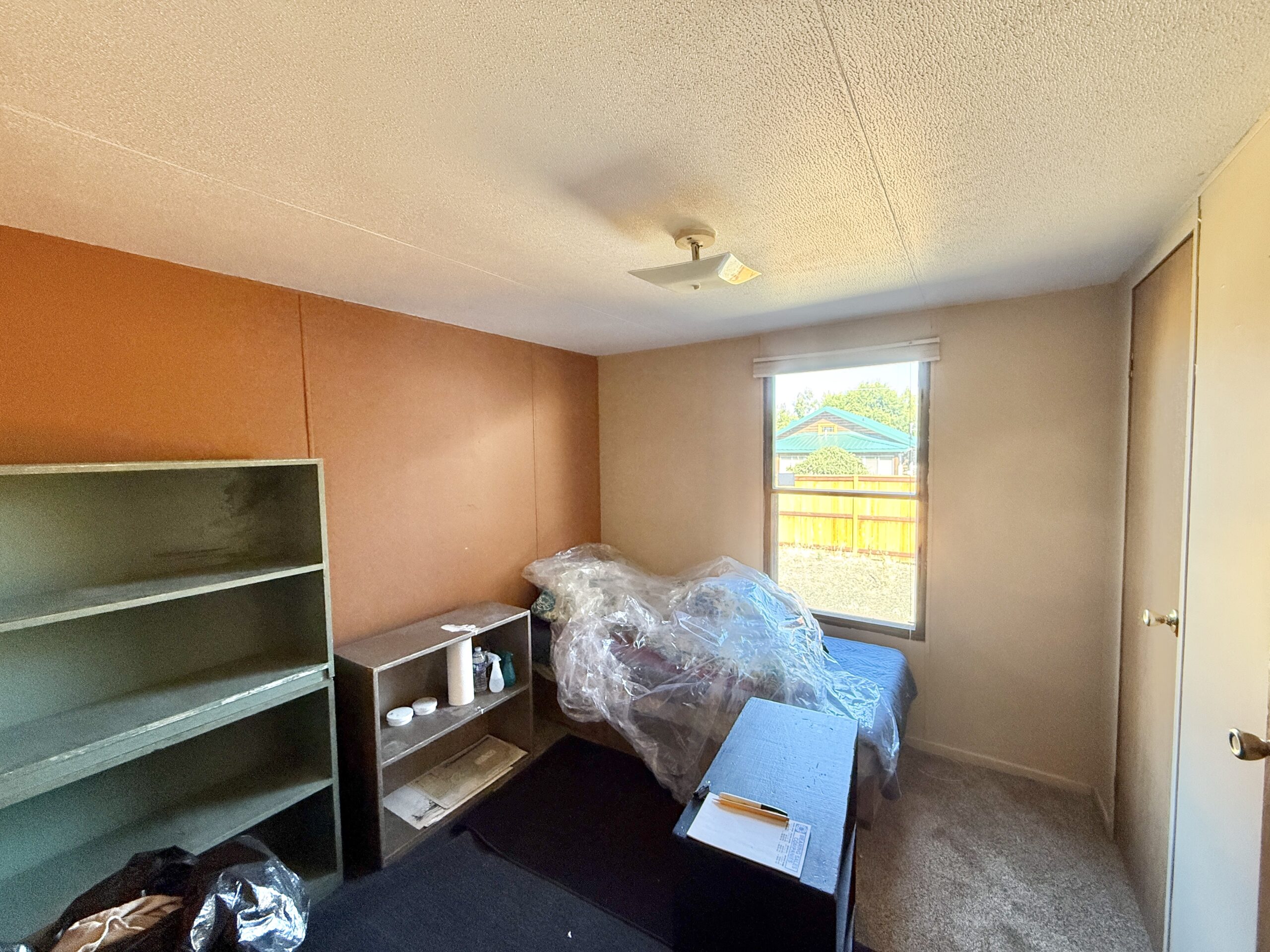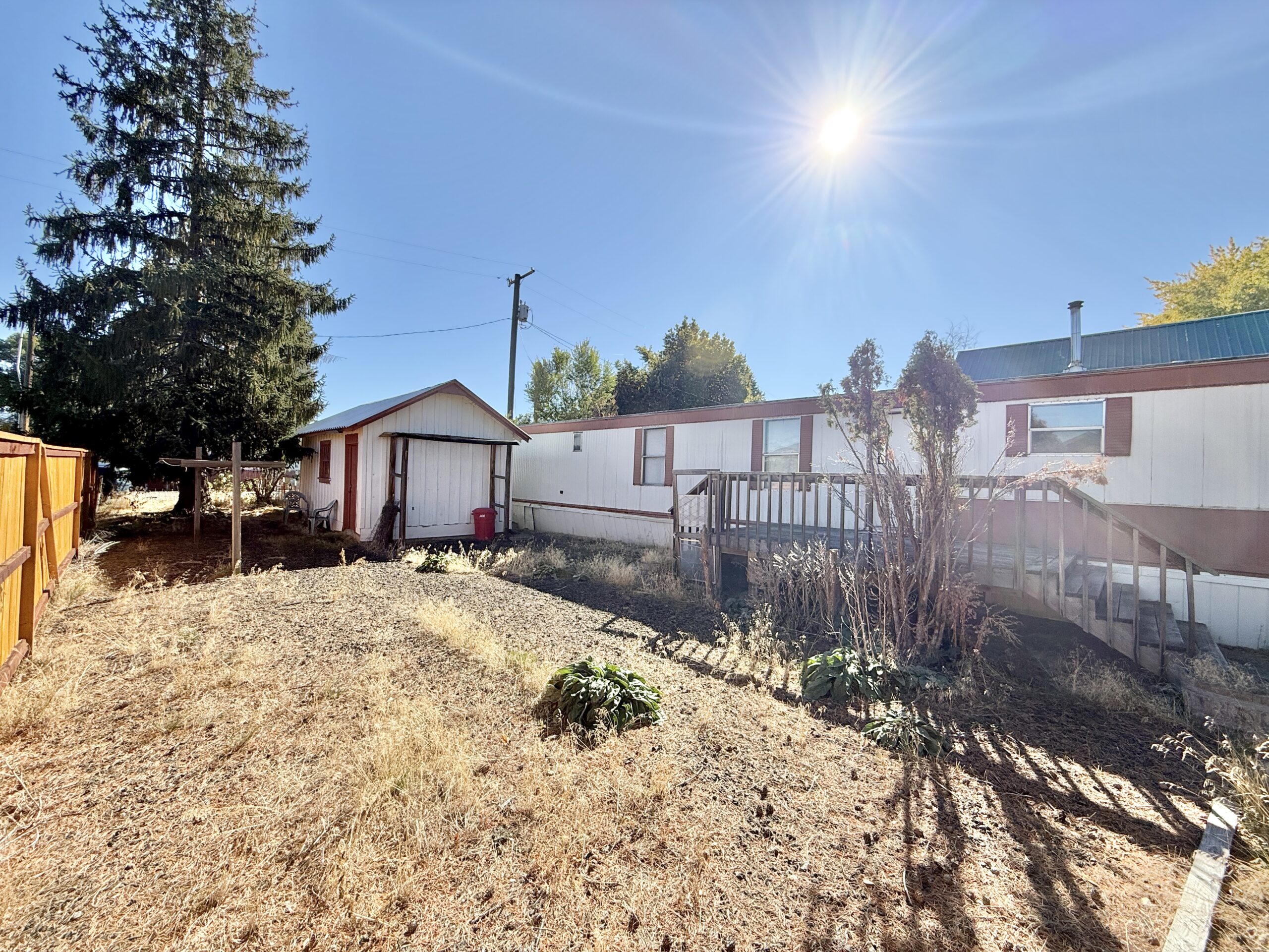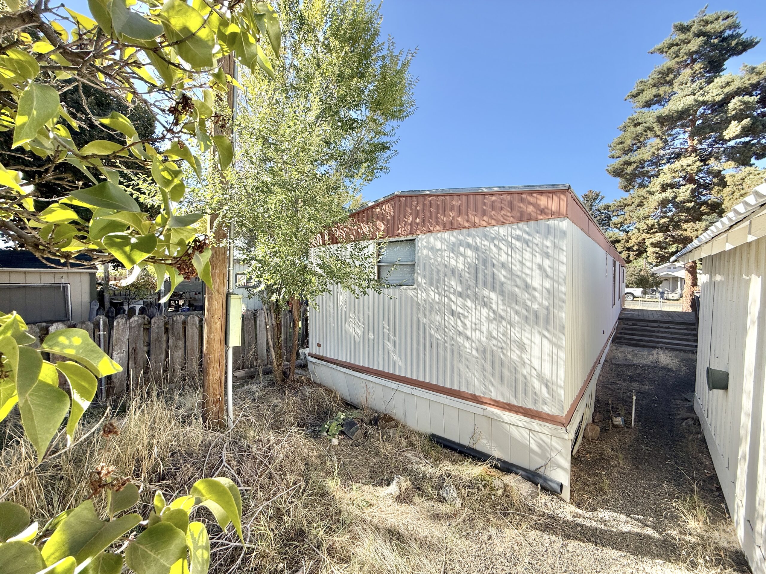 This charming fixer-upper presents a wonderful opportunity for a cash buyer. Enjoy approximately 99’x 49′ lot, 854 square feet of comfortable living space, featuring 2 bedrooms, 1 bathroom, and a cozy living room. The windows are original aluminum, the roof is made of a rubberized material, the home is heated with an electric furnace You’ll have everything you need, along with extra storage for your belongings in the 13’x20′ garage, which boasts a durable metal roof. Please note that the home requires skirting a fridge and some minor repairs. Additionally, securing financing may pose a challenge, as many lenders do not offer loans for single-wide manufactured homes. Currently, the utilities are turned off, but the property includes kitchen appliances and a few personal items.