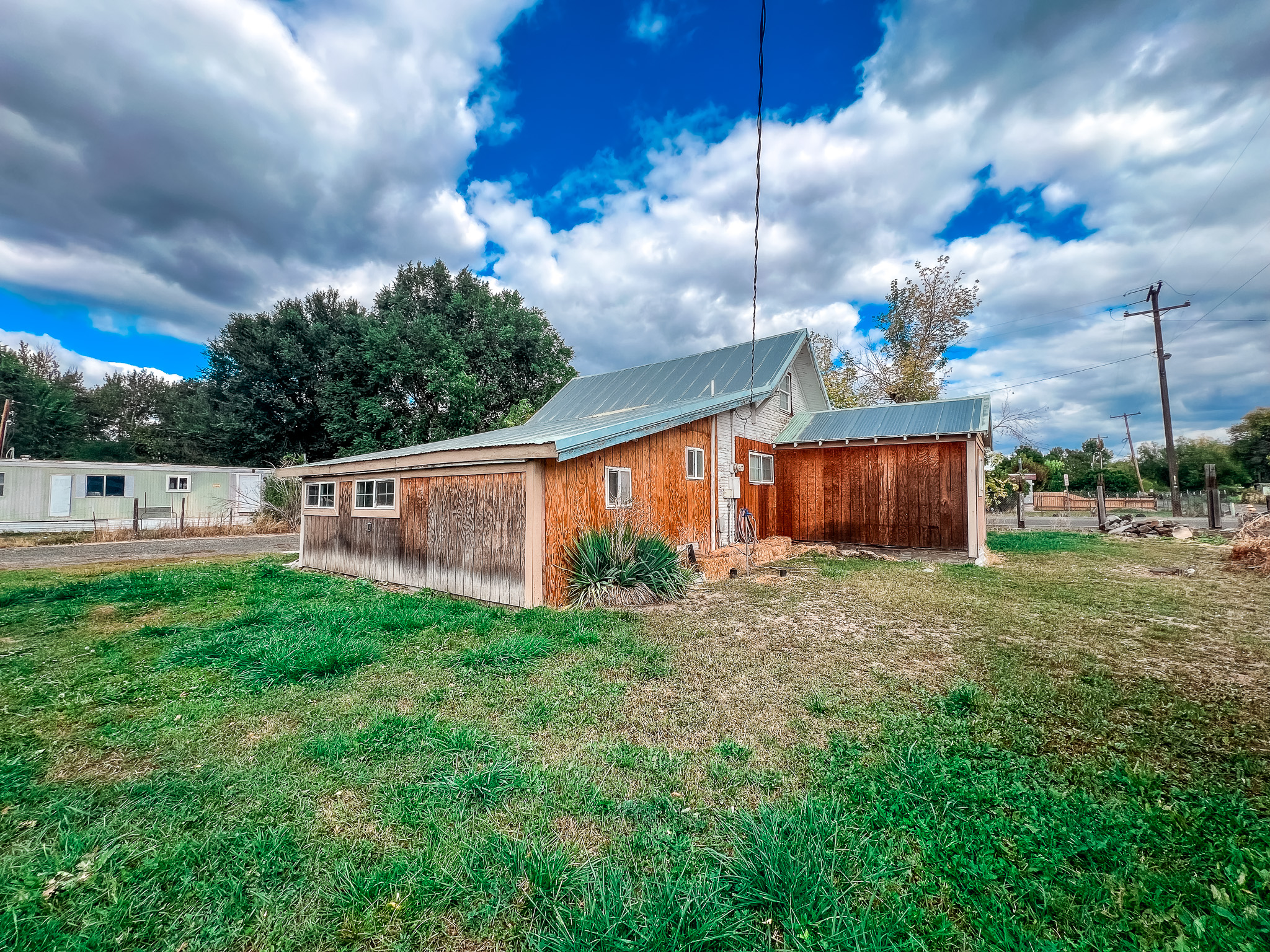 Put the final touches on this property, a 1900s home featuring 1,203 sq ft on the main level and an additional 336 sq ft upstairs. It includes three bedrooms, an office (which could serve as a fourth bedroom), and two bathrooms (2nd bathroom is currently being renovated). Updates throughout the years have been made to the insulation, plumbing, electrical system, sheetrock throughout, and it boasts vinyl windows and doors. The impressive 0.36-acre lot is completely fenced and features multiple fruit trees along with an irrigation well. Additionally, there is a 24′ x 30′ carport with a workshop, a 16′ x 16′ shed that includes an 8′ x 16′ section with tile flooring and sheetrock, an 8′ x 30′ shed, and a 10′ x 10′ shed that could serve as either a chicken coop or storage space. Come explore all that this property has to offer! Flood Plain. Sold as-is.