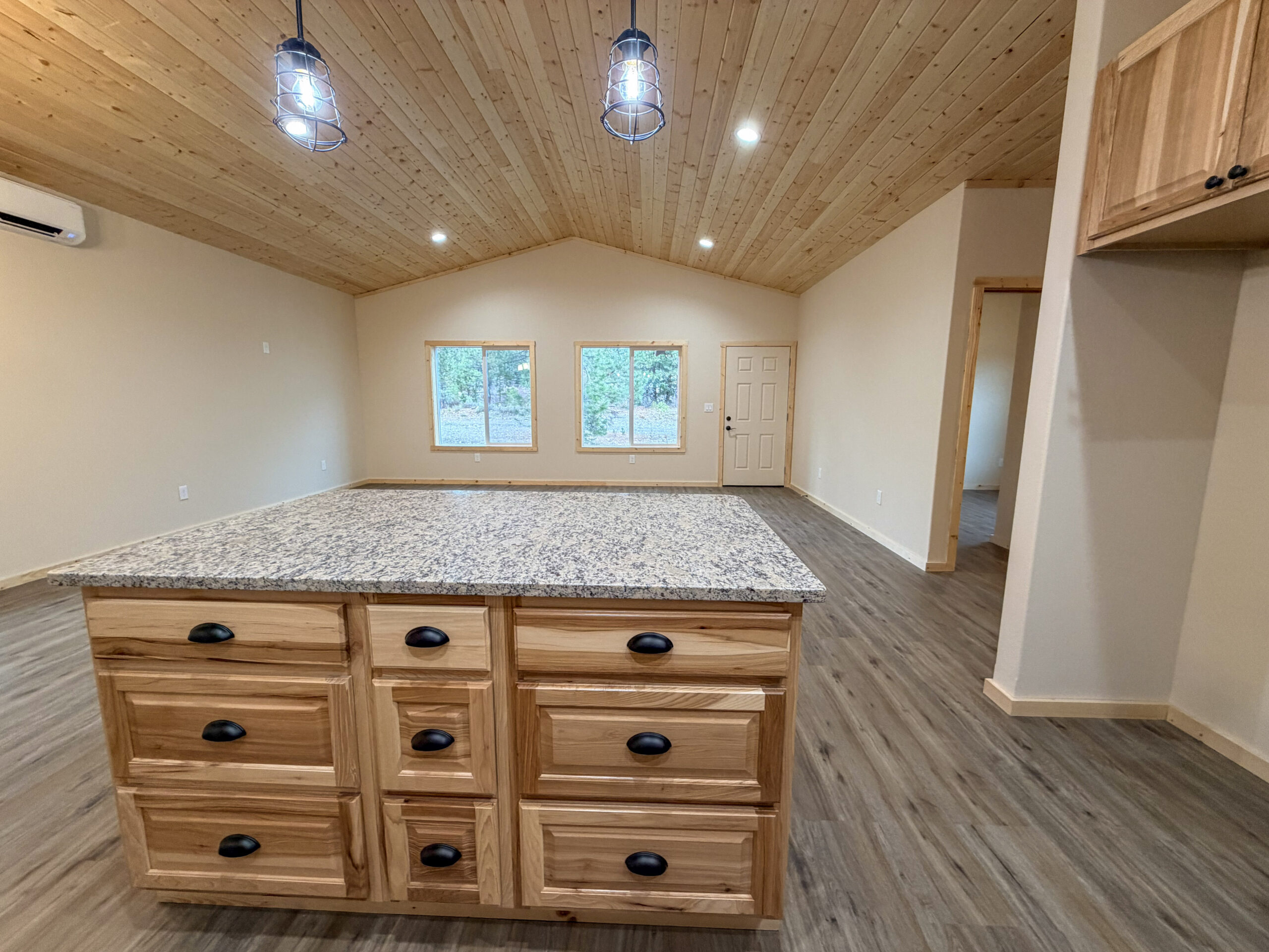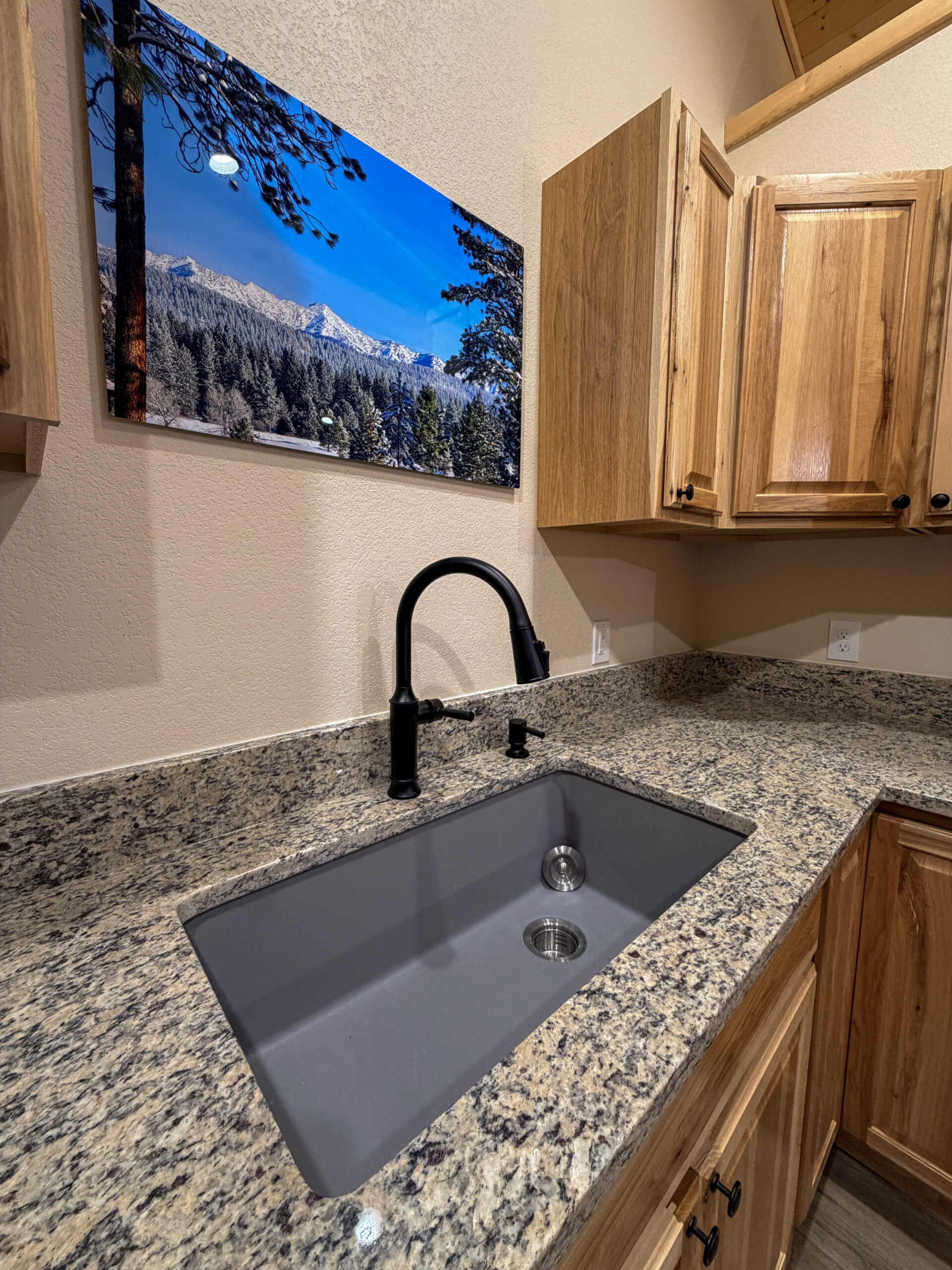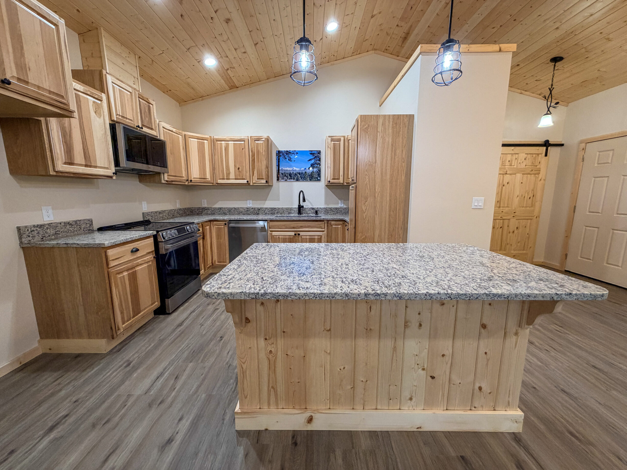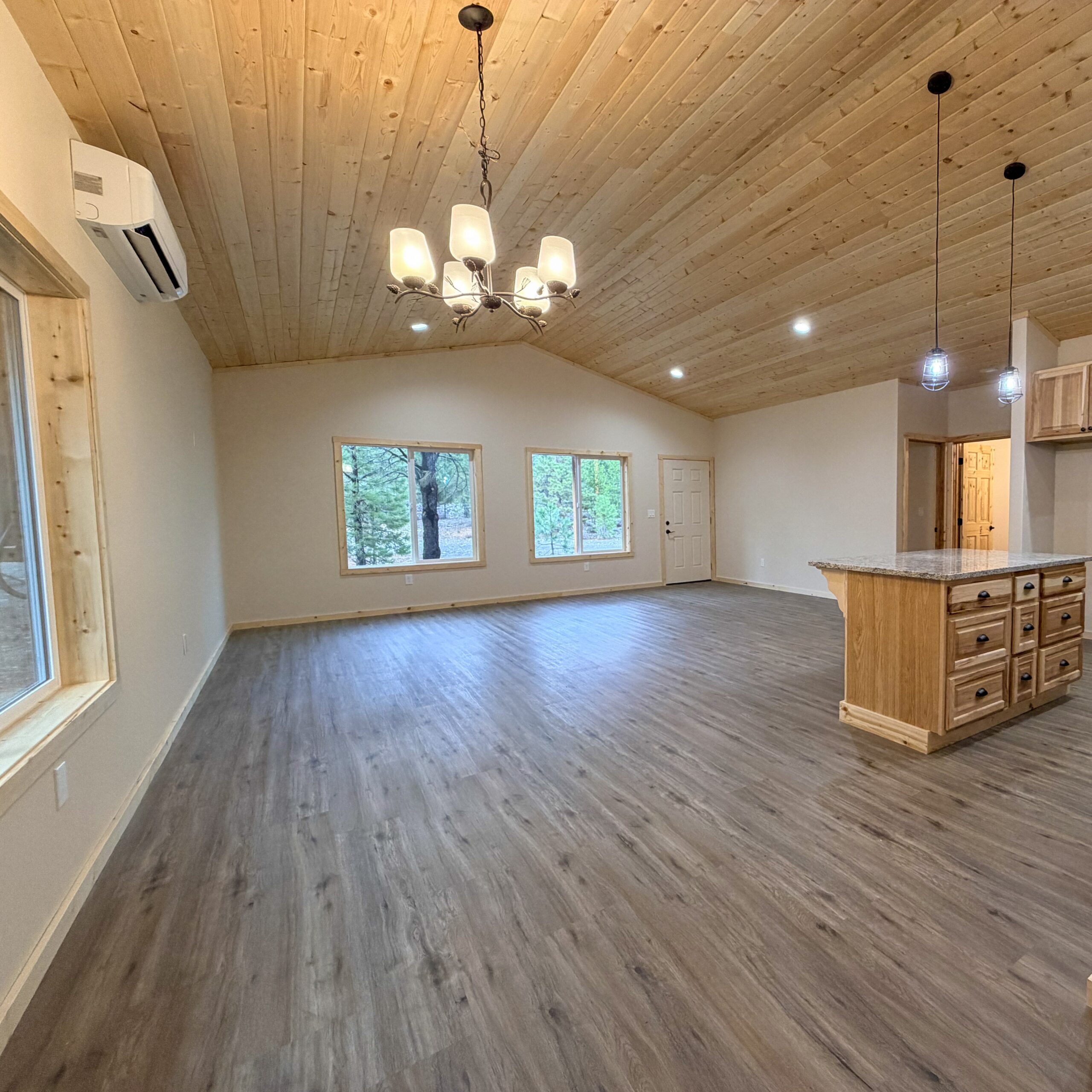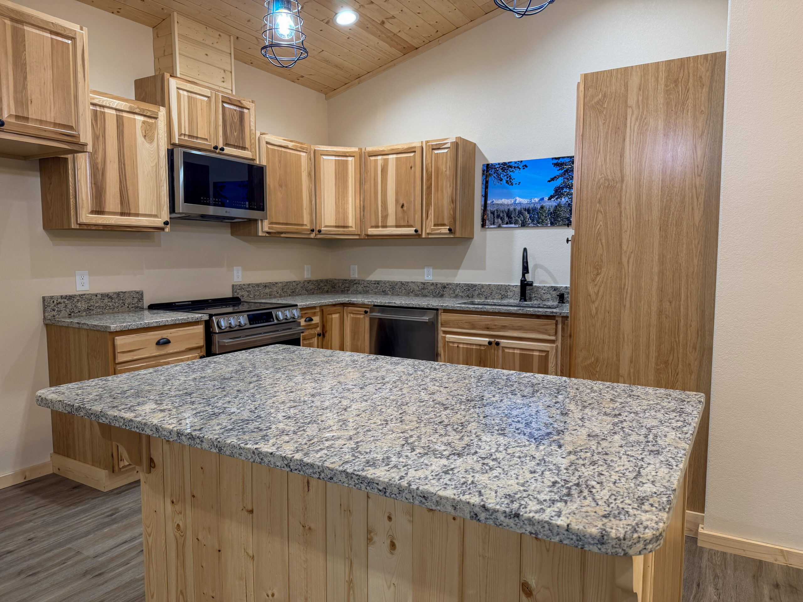 Move-In Ready Custom Cabin in Historic Sumpter Experience the charm of small-town living with modern comfort in this newly built custom cabin-style home. Located on a quiet street in historic Sumpter, this thoughtfully designed property is ideal as a full-time residence, vacation getaway, or investment retreat. This 1,130 sq ft home offers an open-concept layout filled with natural light, featuring pine ceilings, natural wood doors, and quality craftsmanship throughout. The spacious kitchen is equipped with hickory cabinetry, granite countertops and backsplash, a large center island, and pantry—perfect for entertaining or everyday living. The home includes 2 bedrooms and 1 bathroom with a walk-in shower, plus a dedicated laundry room with additional storage. Waterproof wood-looking flooring runs throughout for durability and easy maintenance. Step outside to enjoy a covered entry and concrete patio, along with an oversized double-car garage and ample space for RV or recreational parking. Situated on an approximate 6,000 sq ft city lot, this property offers low-maintenance living with close access to outdoor recreation, trails, and all that history Sumpter has to offer. Turn-key, low-maintenance, and ready for immediate enjoyment.