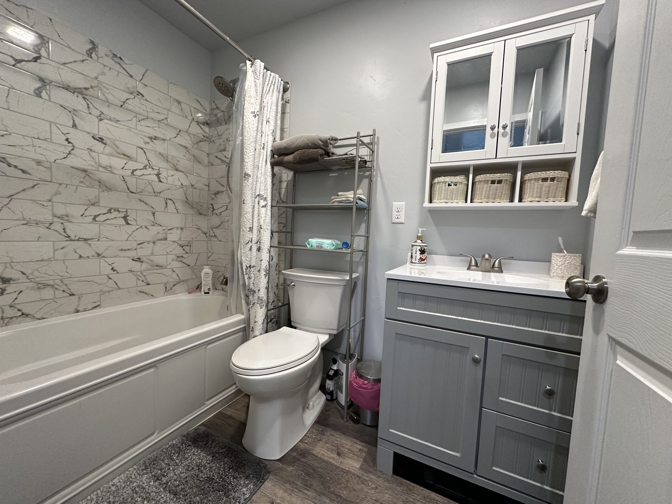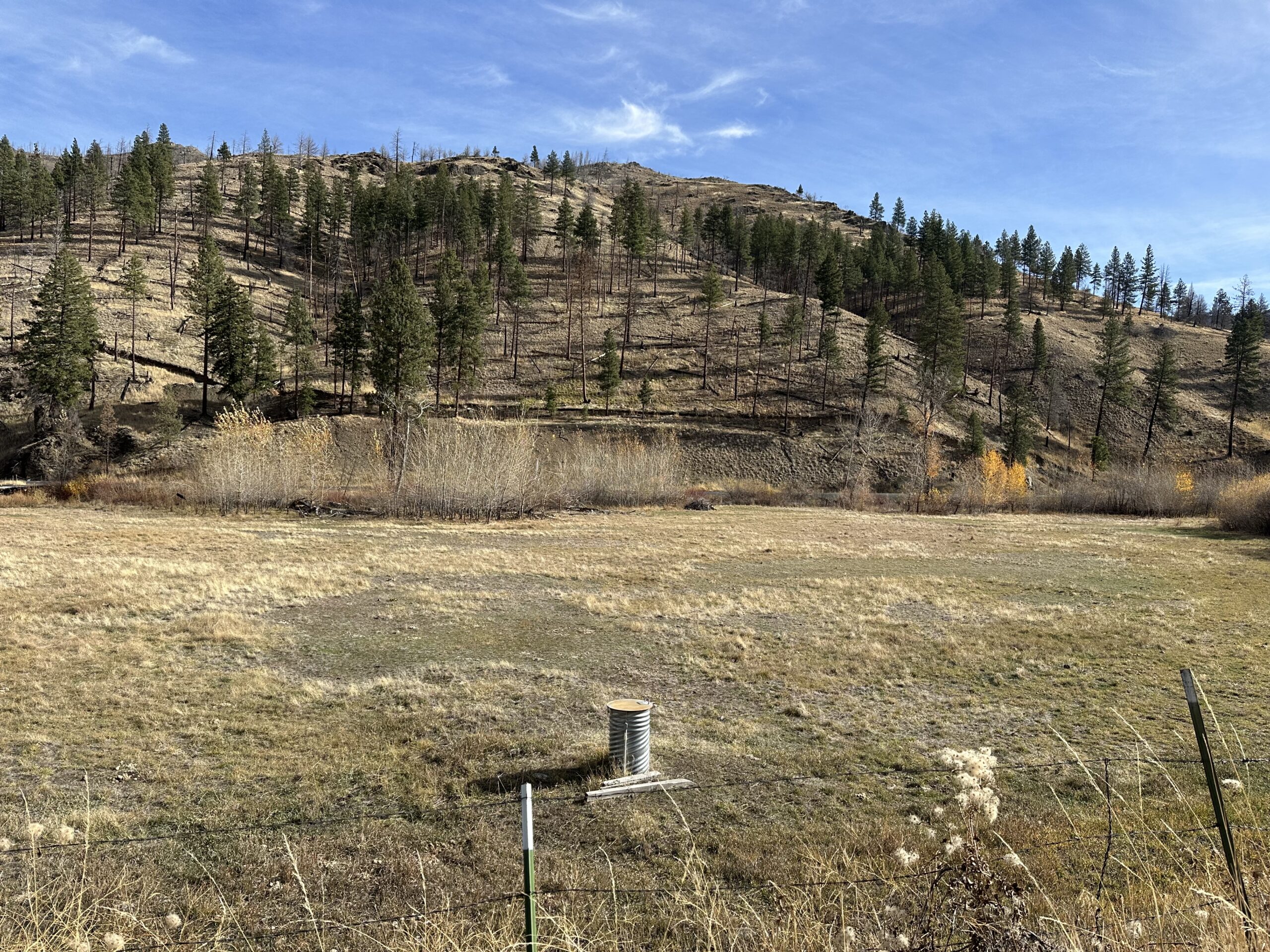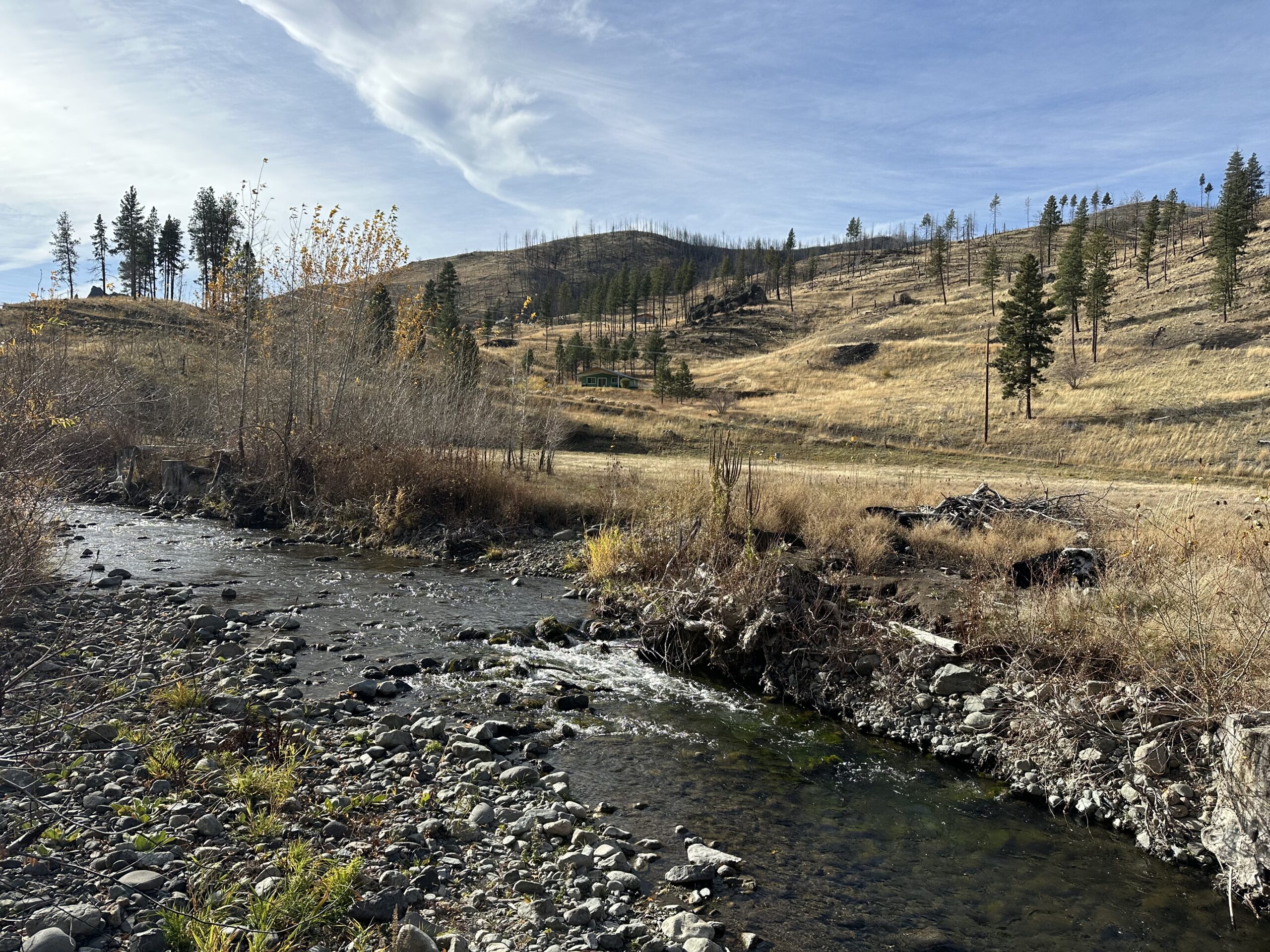 This quant home, constructed in 2024, is situated on 21.9 acres and offers stunning views of irrigated pastures and Canyon Creek. Nestled in a private setting, this 900 sq. ft. residence features two bedrooms and one bathroom. The home boasts an open floor plan, a kitchen island, and a spacious pantry with room for a stackable washer and dryer. Thoughtful accents enhance the interior, which includes both laminate and carpet flooring. Recent upgrades include a new well pump, a water softener, and a UV light, with the home being generator-ready. Additionally, there is a full RV hookup equipped with a 50-amp pedestal, as well as dump and water access. The sale includes a charming hickory shed, a hot tub, a dog kennel, and all kitchen appliances. Additional storage is found in a nice block cellar, which houses pressure tank and water filtration.