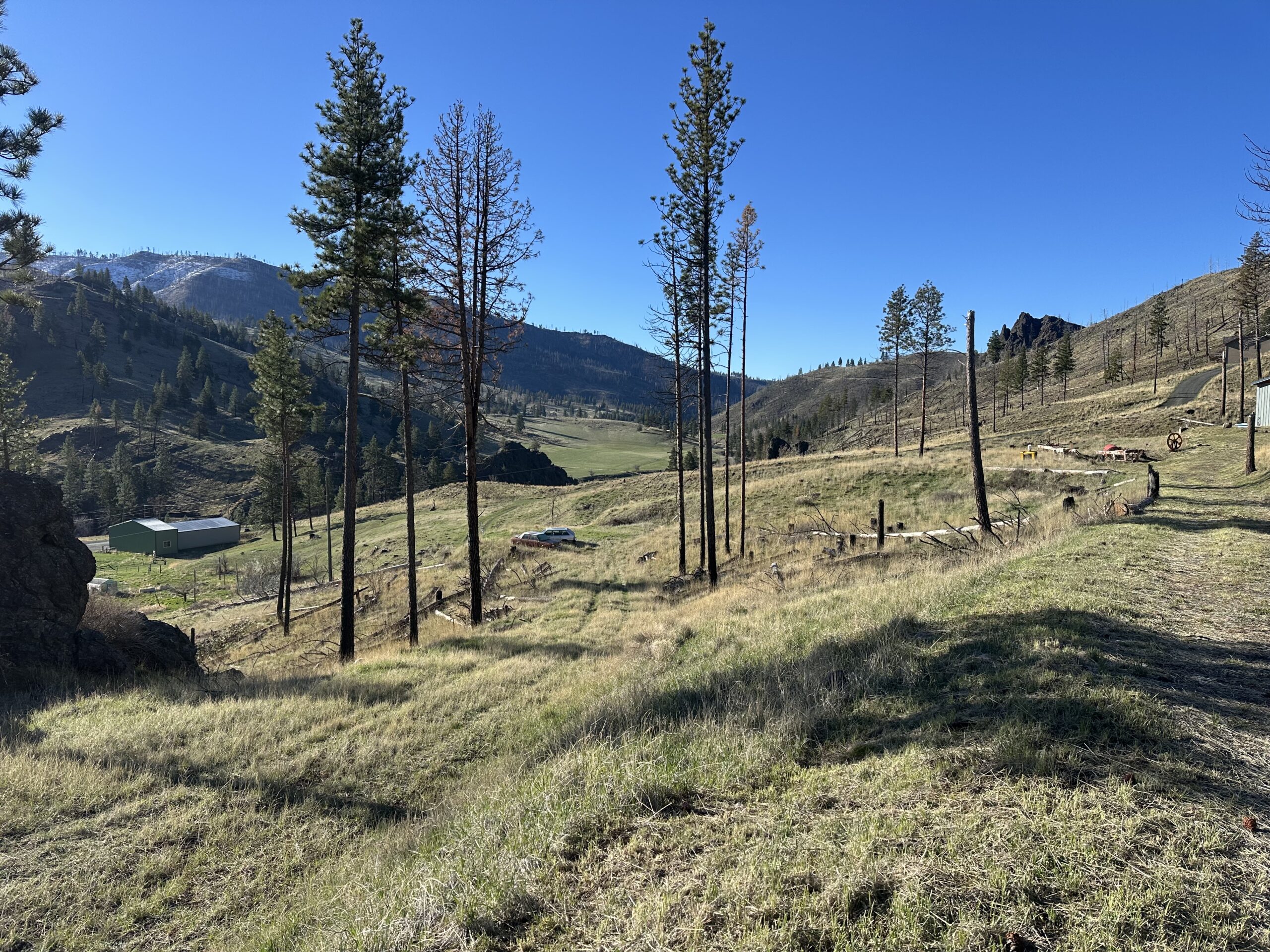Shop 36×48 setting on 15.15 acres ( 2 tax lots) with incredible mountain views. Camper is included & hooked to well and septic, inquire for more information . Beautiful setting to use as is or build/install your dream home. Lots of materials & personal property will be left with the property. Year around access on private road.